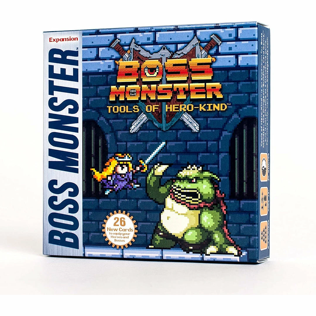 The adventurers strike back in this 26-card mini-expansion for Boss Monster! Increase the challenge and fun of the game with an all-new way to play: powered-up Heroes! Can your Boss handle the challenge?