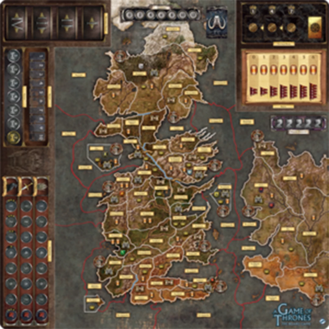 This deluxe gamemat is fully compatible with the Mother of Dragons expansion, seamlessly incorporating the continent of Essos, the dragon strength track, the Iron Bank of Braavos, House Arryn’s stronghold in the Eyrie, the fourth Westeros deck, and additions to the influence tracksβall printed onto a single thoughtfully arranged gamemat.