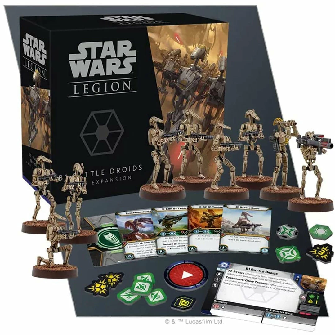 - Create a massive droid army with the nine highly-detailed B1 Battle Droid miniatures found in this expansion! Seven Battle Droids can lay down heavy fire with their E-5 Blaster Rifles, while a B1 Trooper with an E-60R poses a threat to enemy vehicles. Finally, an E-5C B1 Trooper adds even more firepower to your battle droids in their quest to bring down the Republic.