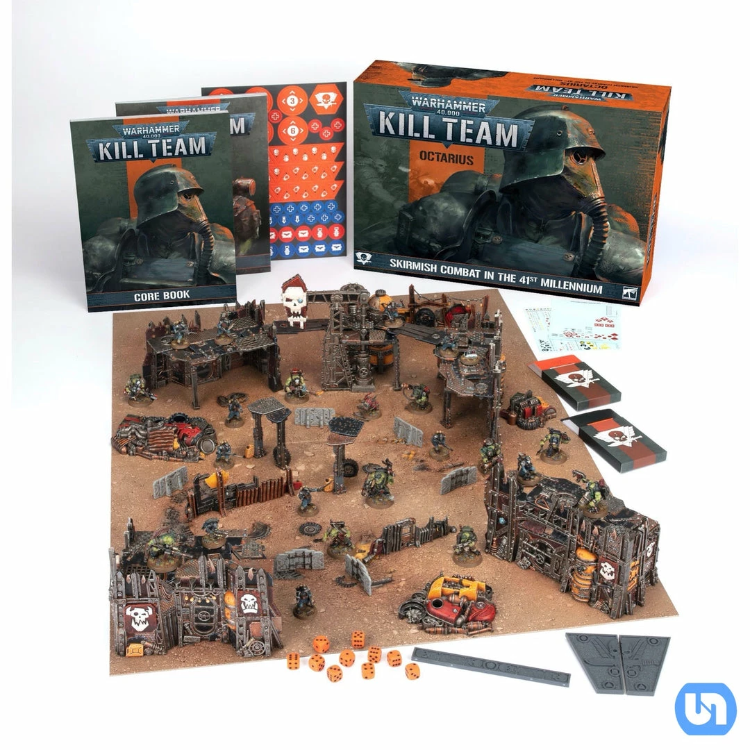 The new edition of Warhammer 40,000: Kill Team has been redesigned from the ground up as the greatest tabletop skirmish experience yet, and Kill Team: Octarius is the perfect place to start your campaign of clandestine missions. This incredible boxed set includes two full kill teams โ Veteran Guardsmen of the Death Korps of Krieg and cunning Ork Kommandos โ alongside all the rules, terrain, and accessories you need to start playing.