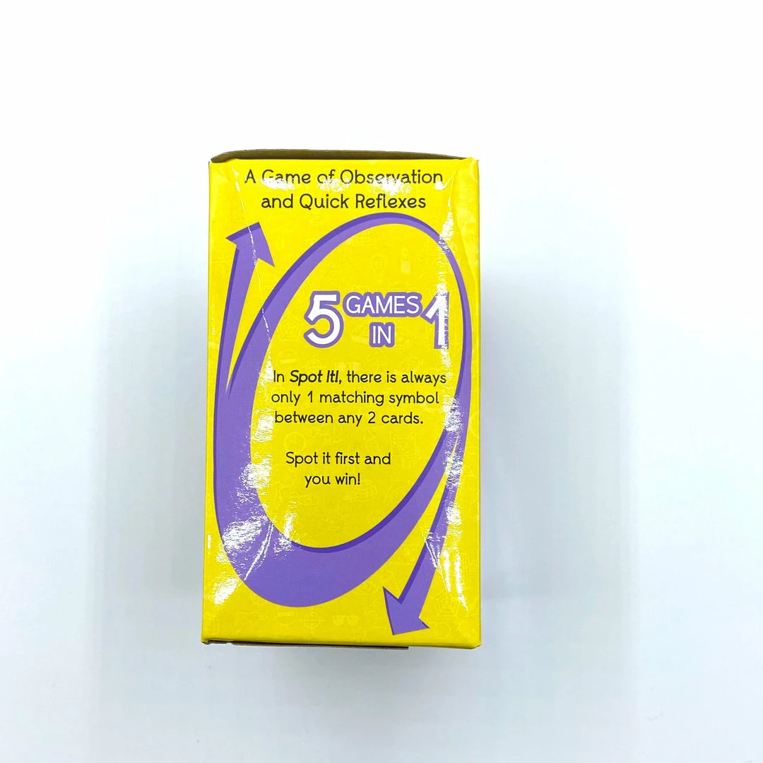 Test your observational skills and your reflexes with the award-winning gameplay of Spot It! A game of lightning-fast choices for two to eight players. With dozens of awards and possible versions married to elegant gameplay, Spot It! has become a global phenomenon. Five distinct mini-games within a set of Spot It! Ensure that the game will be different every time you play, and because itβs always your turn, thereβs never any downtime! Color/ packaging may vary.