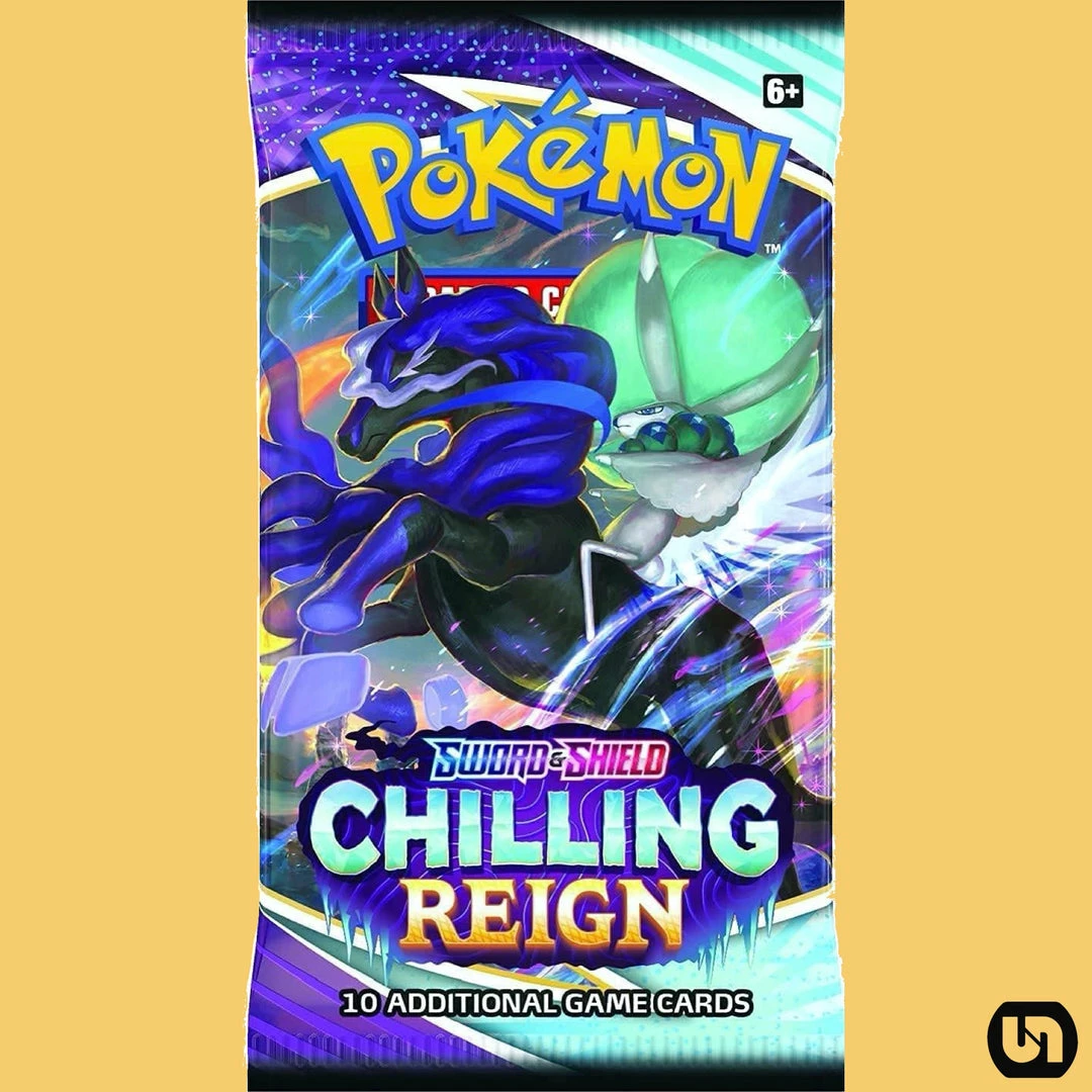 Seize the advantage with PokΓ©mon of the frozen lands, including the powerful Ice Rider Calyrex VMAX and Shadow Rider Calyrex VMAX plus the Galarian forms of Articuno, Zapdos, and Moltres in Sword & Shield Chilling Reign! Phantom hauntings, howling blizzards, and wild battles expand the realms of your PokΓ©mon strategy with new powers and new possibilities. Press on despite ghostly opposition, and claim total victory in the land of spectral snow with the PokΓ©mon TCG: Sword & Shield Chilling Reign expansion!