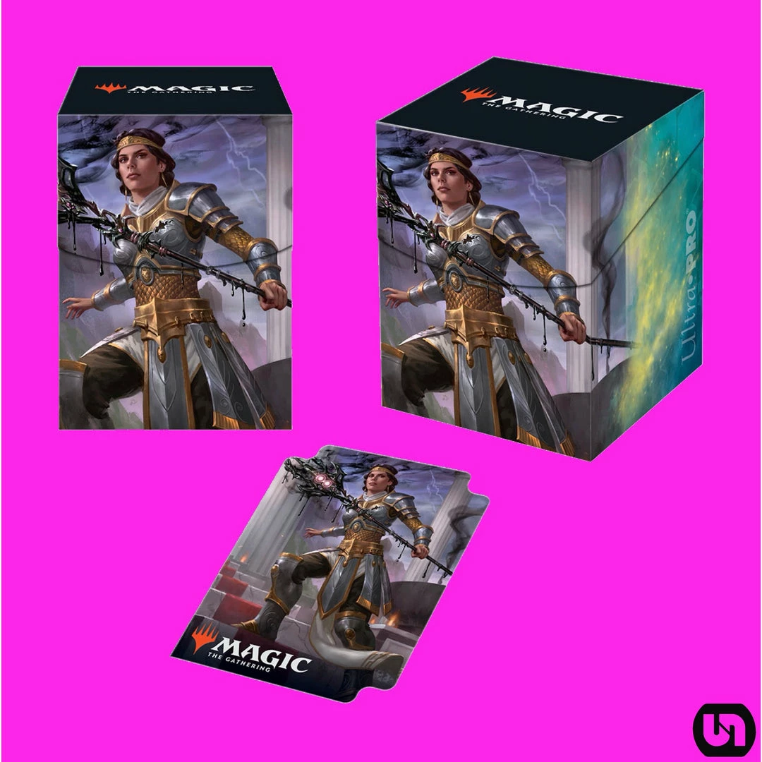 Store and protect your favorite deck with this Magic: The Gathering PRO-100+ Deck Box, sized to fit 100 standard size (2.5″ x 3.5″) gaming cards double sleeved in Ultra PRO Deck Protector sleeves. With full color printing and limited production, this Deck Box is a great addition to any MTG collection.